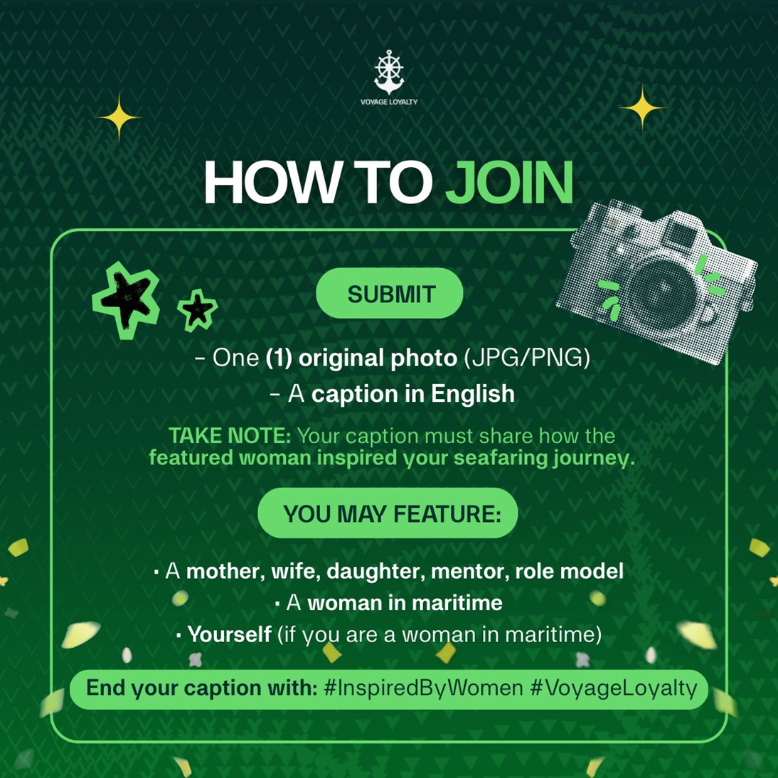 We invite you to join the Voyage Loyalty Global Photo Contest and submit a photo that highlights a woman who has made an impact on your seafaring journey. She could be your mother, wife, daughter, mentor, a woman working in maritime — or even yourself.